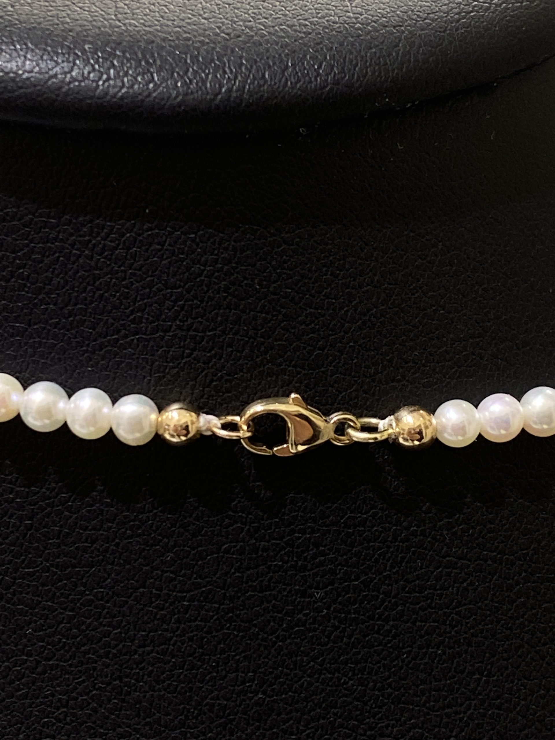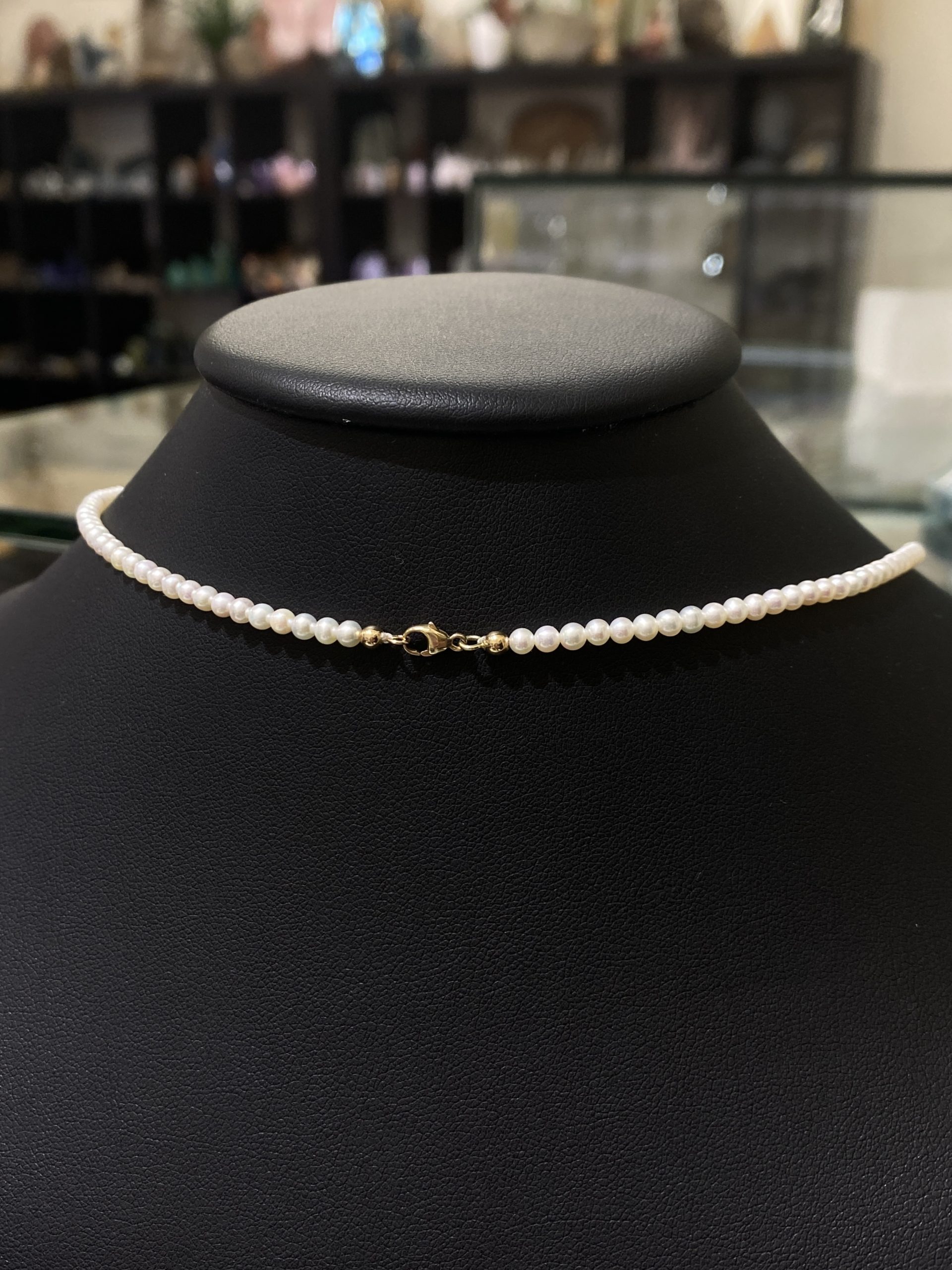 Něžný perlový náhrdelník – drobné perly 3 mm, zlatá karabinka
