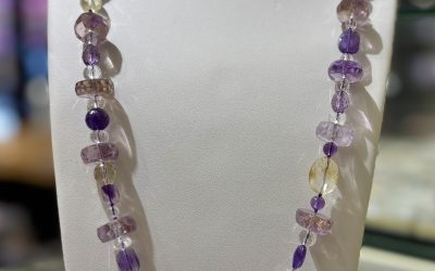 Představujeme jedinečný náhrdelník s nepřehlédnutelnými ametrínovými korálky doplněnými citrínem, křišťálem a ametystem. Náhrdelník v sobě snoubí hned několik jedinečných brusů korálků od kapiček, přes obdélníky až po klasické kuličky. K tomuto nádhernému kousku u nás naleznete také náremek! Ametrínový náramek Celková hmostnost náhrdelníku je 106 g. Průměr největších korálků z ametrínu je 15 mm a … Pokračování textu Ametrínový náhrdelník