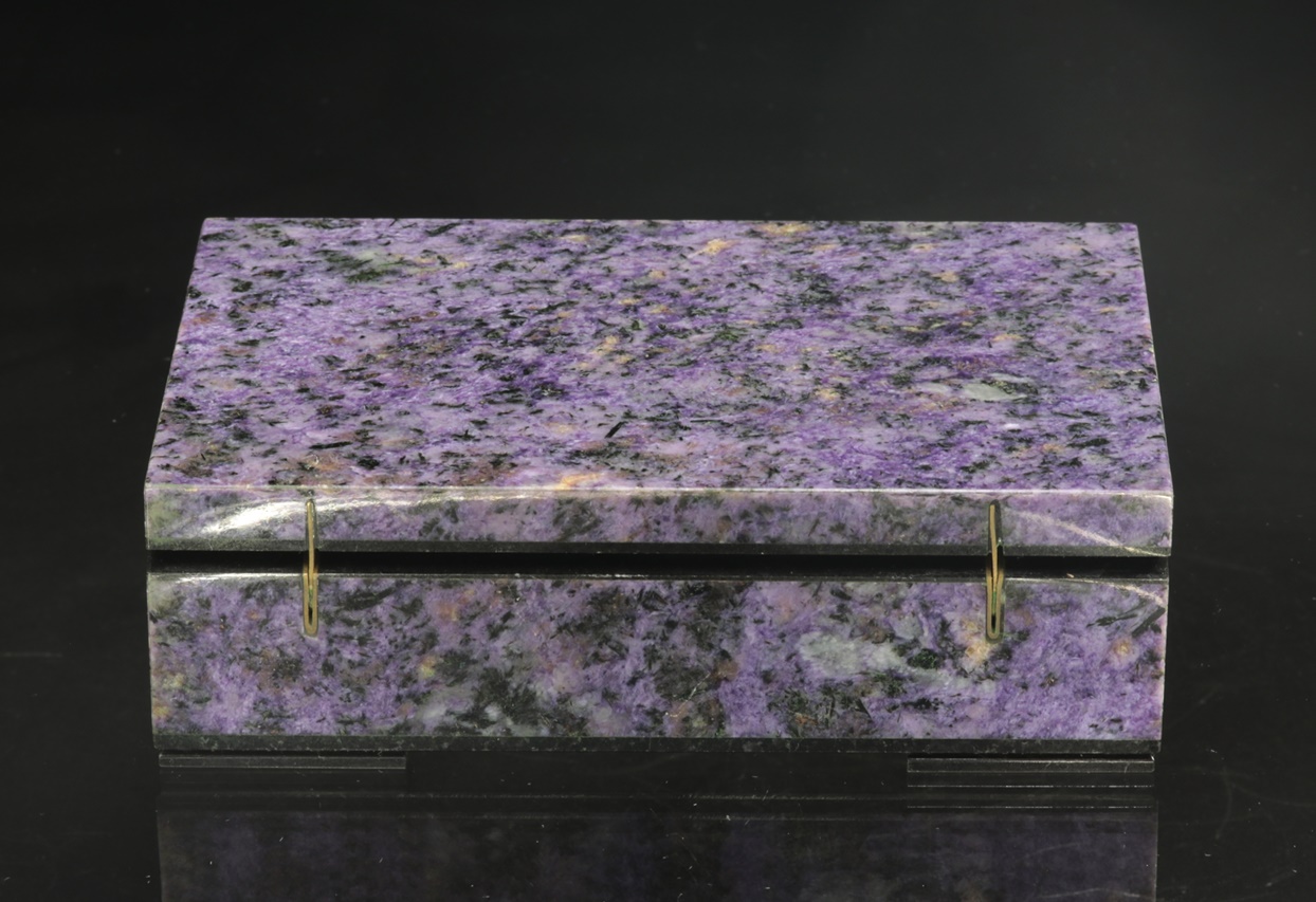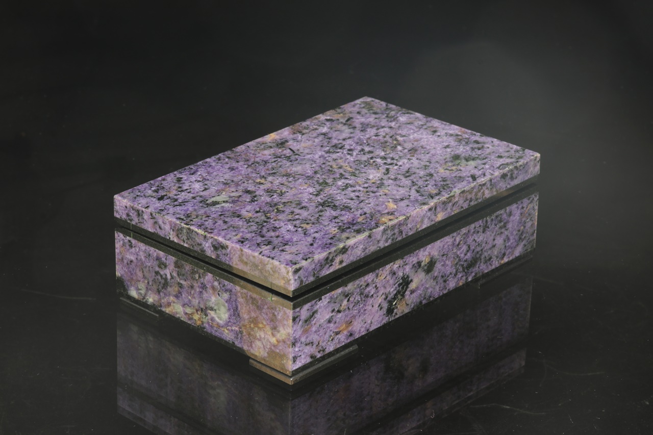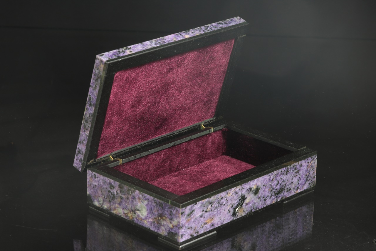 Otevírací šperkovnice vyrobená z fialového přírodního čaroitu.