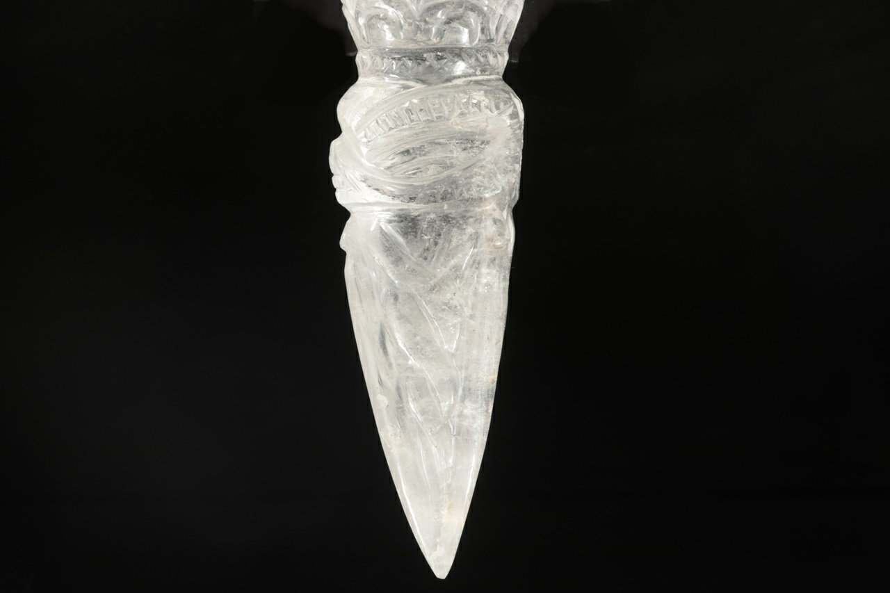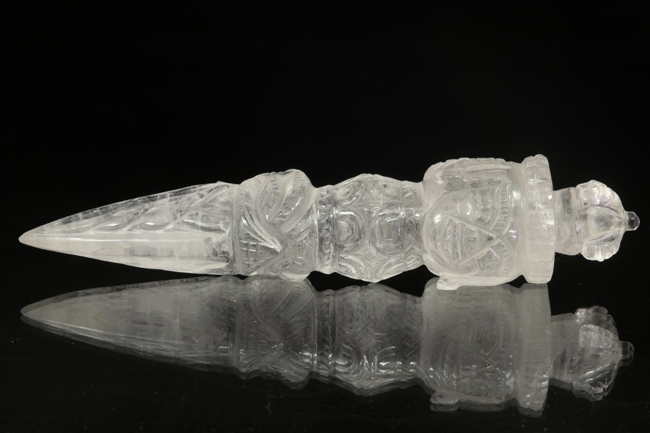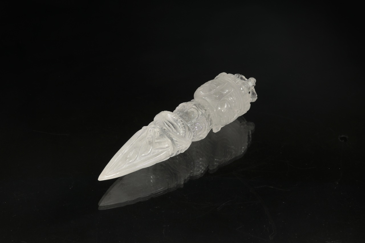 Buddhistická obřadní dýka se třemi břity vyrobená z přírodního křišťálu.
