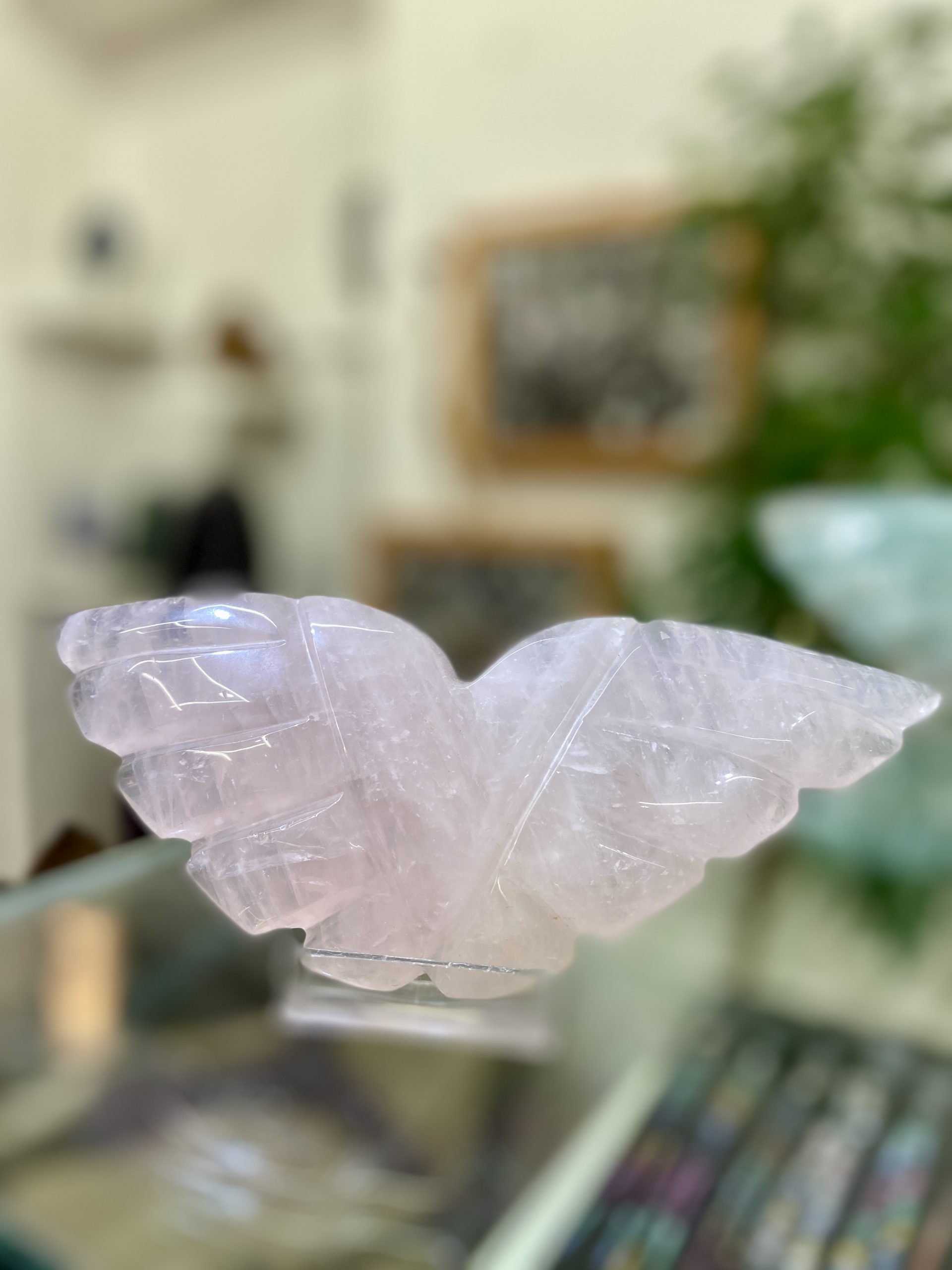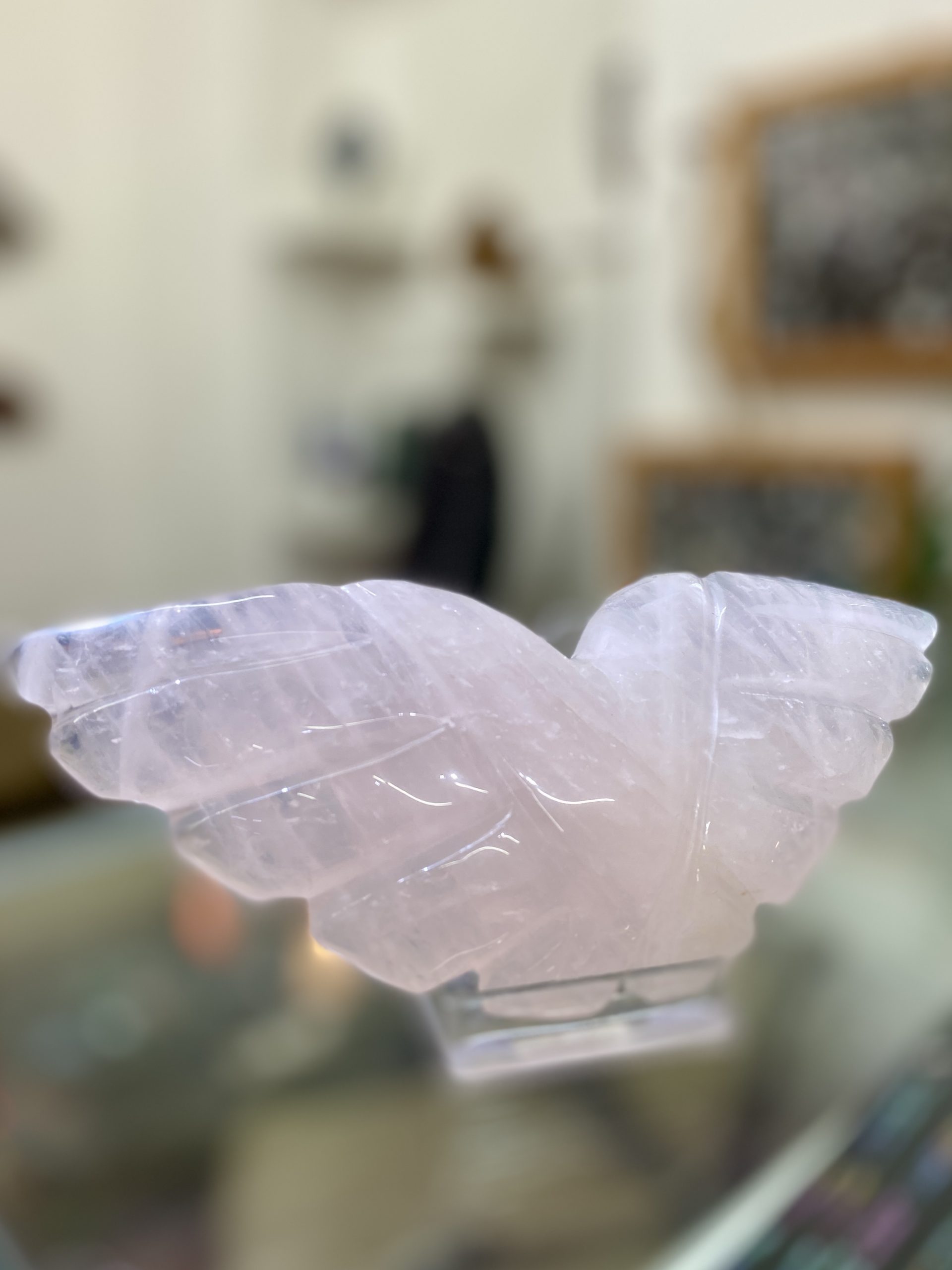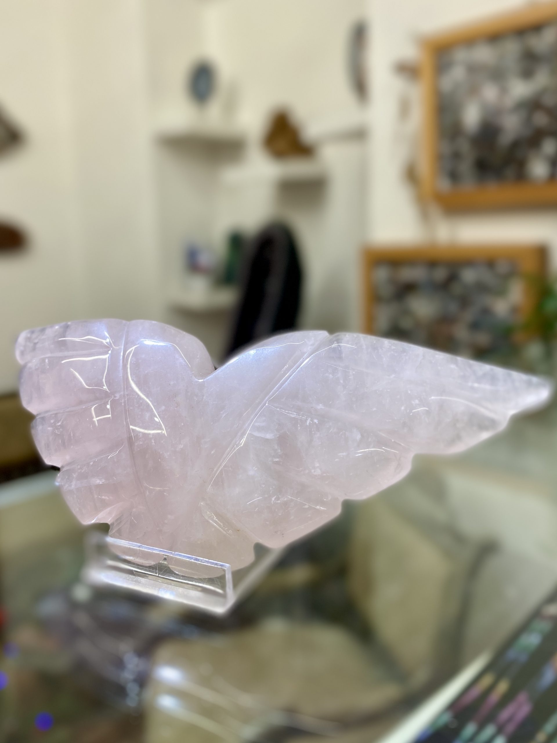 Nádherná andělská křídla vyřezaná z něžně růžového růženínu. Krásně ozdobí každý stůl a interiér.