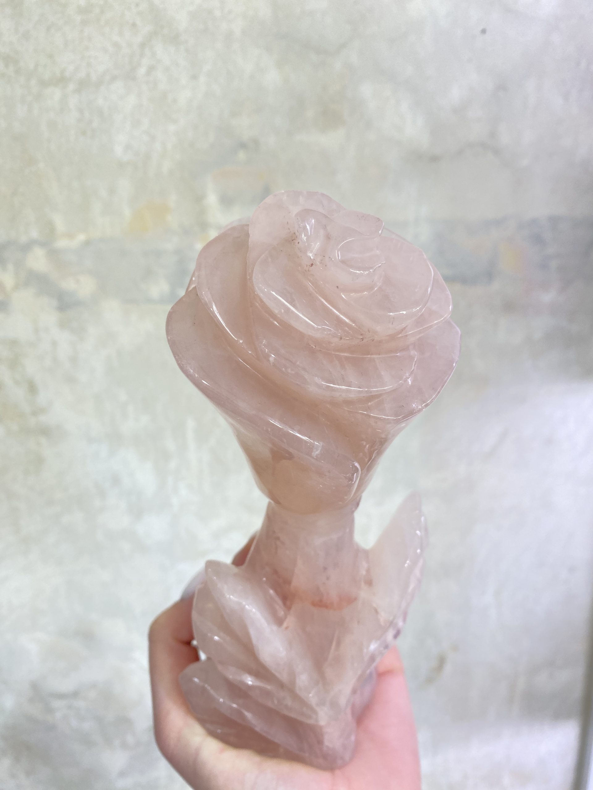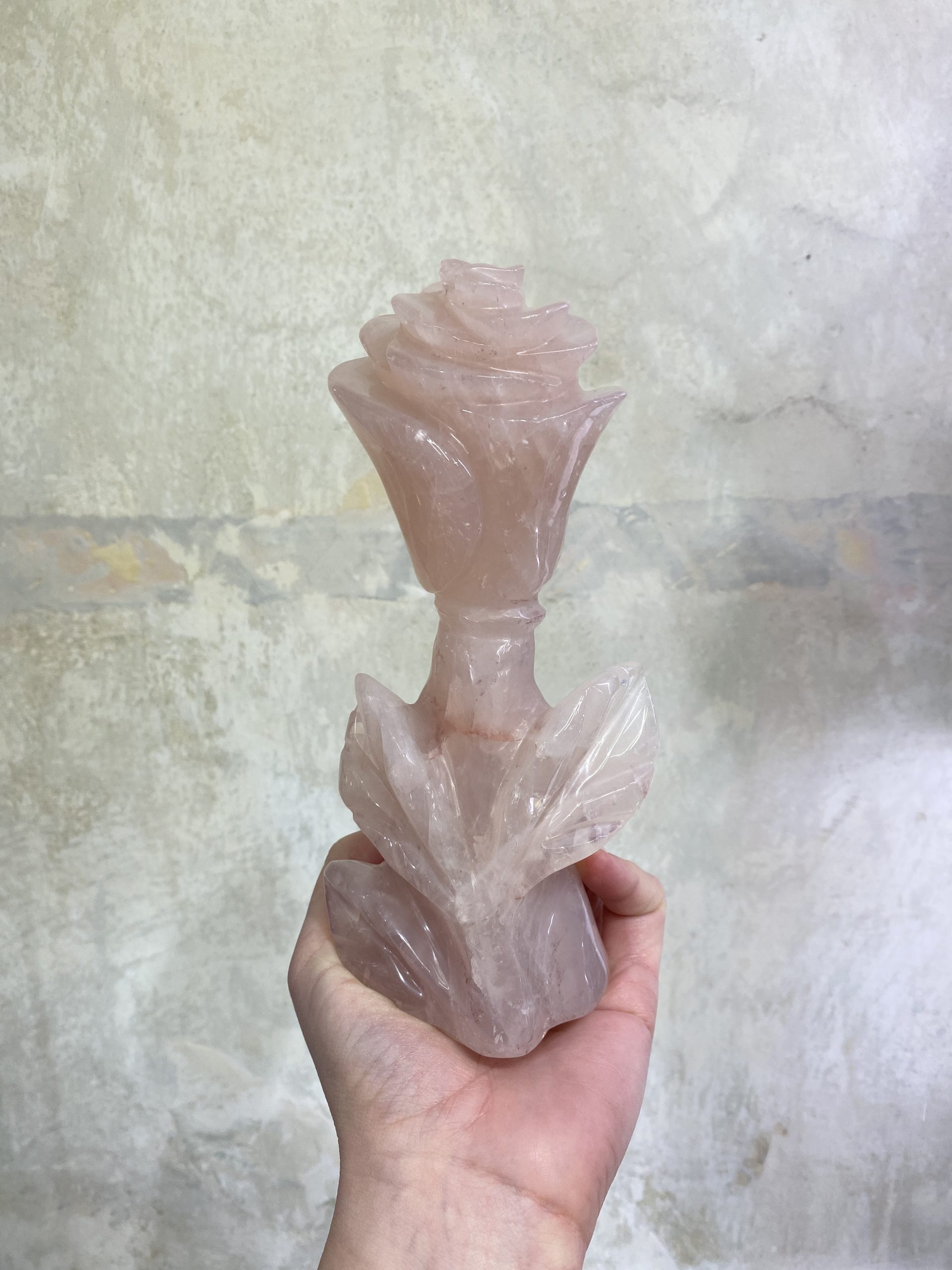 Nádherná samostojná socha růže, vyřezaná z jednoho kusu něžně růžového růženínu. Překrásně ozdobí interiér.